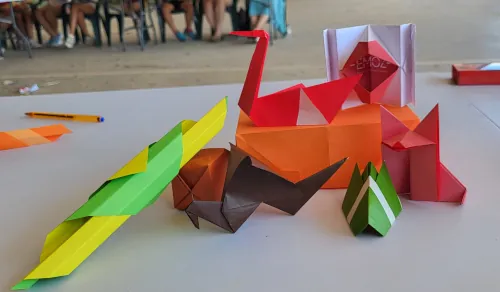 Dentro de la semana cultural organizada por la Asociación El Hocino, se celebró el 2 de agosto, una de sus jornadas más encantadoras y participativas: un taller de papiroflexia, que logró congregar a una nutrida representación de la localidad. Entre 20 y 30 participantes, desde los más pequeños hasta los adultos, se dieron cita en el Frontón para convertir sencillas hojas de papel en complejas y graciosas creaciones.