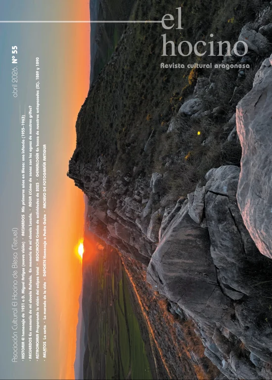 Destacamos en este número: las memorias con que nos enriquecen varios blesinos (Mª Jesús Crespo, o la recientemente fallecida Luz Galve); los relatos de Jorge Aznar y Manuel Val; así como el gran documento fotográfico de la historia de Blesa, historia en gran parte perdida en lo material, que hallarás en las paginas centrales, una fotografía de julio de 1931 con los blesinos presenciando en masa el homenaje a Miguel Artigas Ferrando, director de la Biblioteca Nacional.