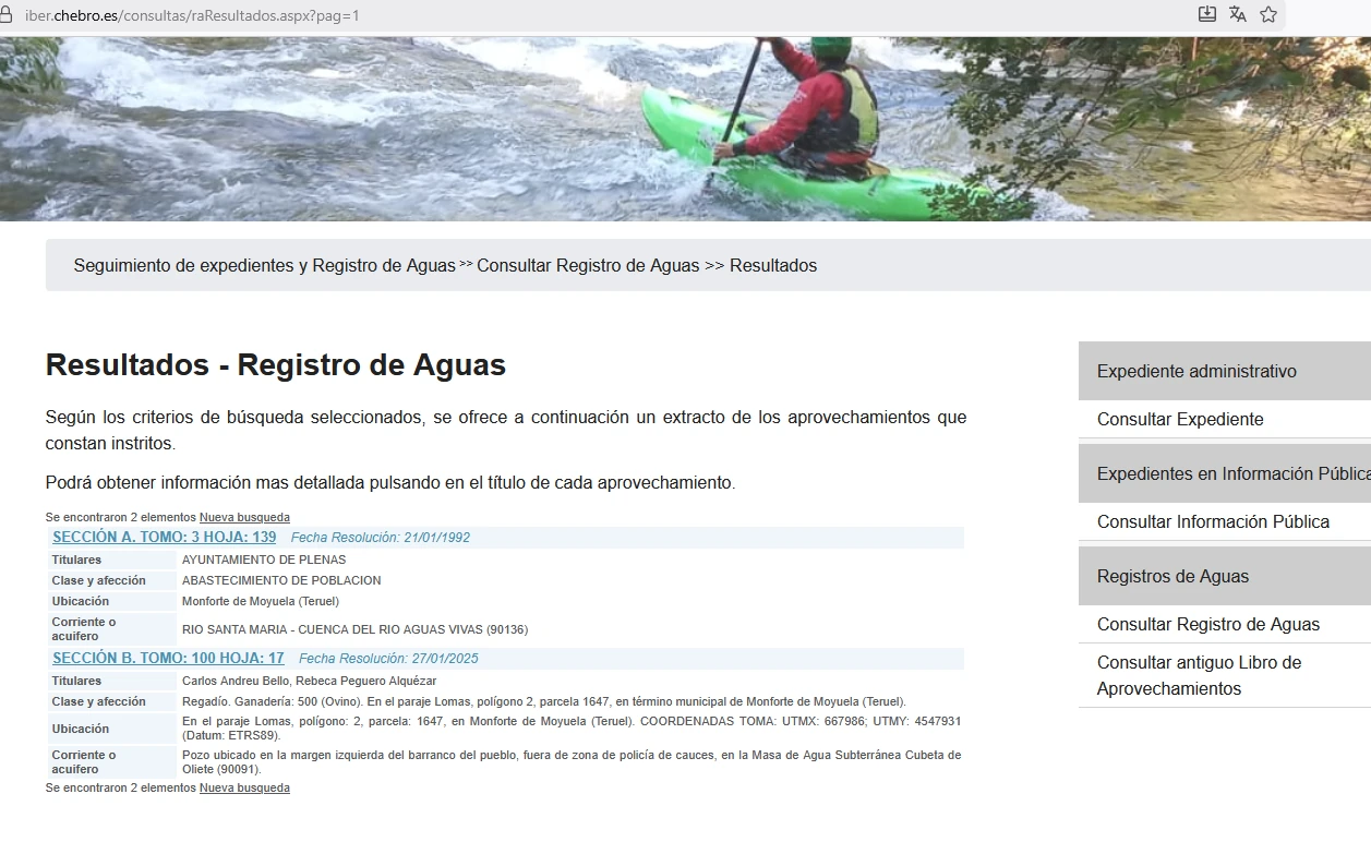 La historia es que la granja actual de Monforte de Moyuela parece ser que no tiene inscrito ningún tipo de aprovechamiento en la CHE, y posiblemente está extrayendo agua de su parcela, lo cual es legal hasta cierta cantidad. Sospechamos que ese aumento de consumo de agua que declara en la ampliación puede querer hacerlo sin pasar por el trámite de solicitud administrativa de una concesión que le pueden denegar. ¿Lo habrán solicitado?